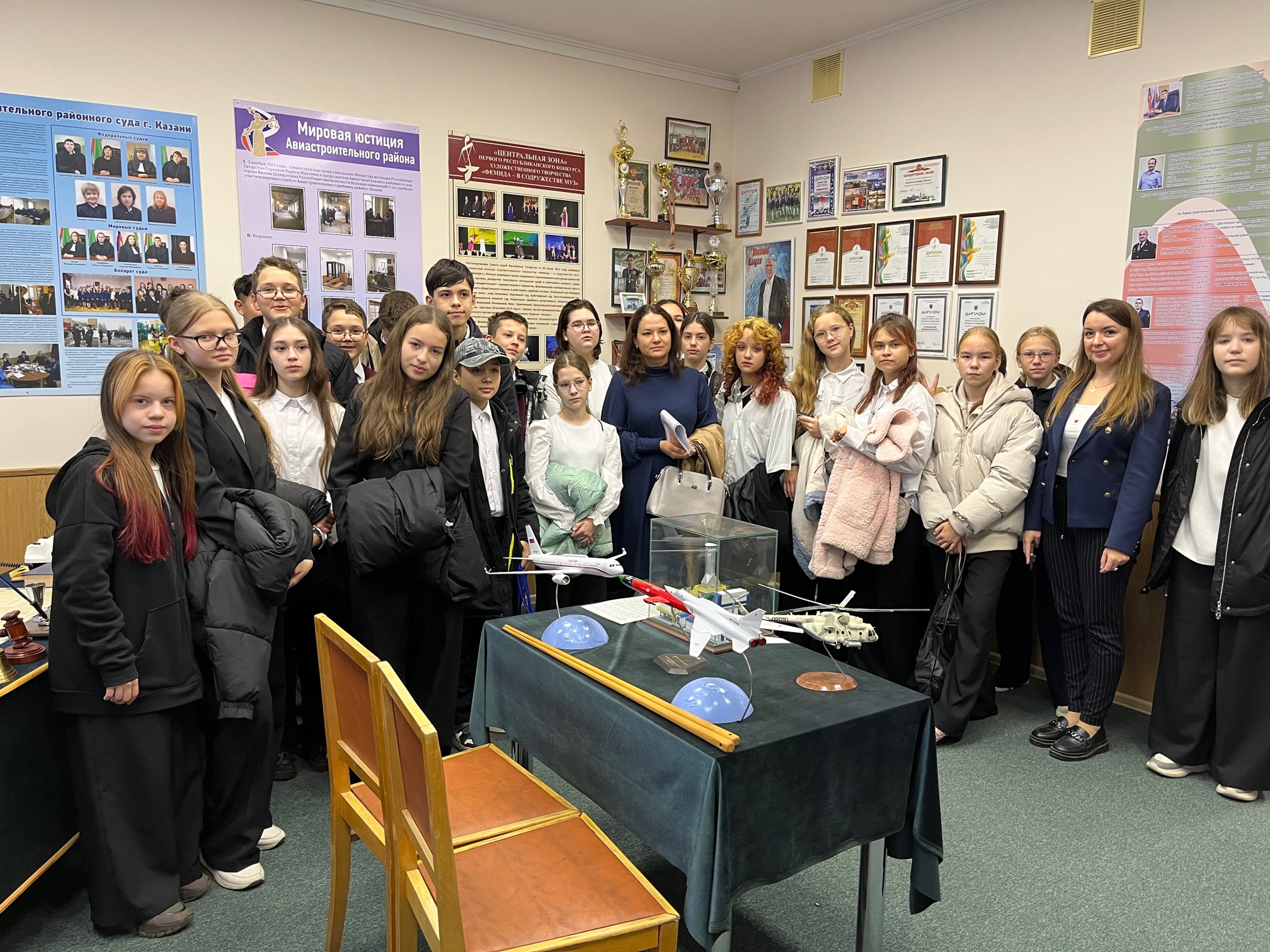 В Авиастроительном районном суде г. Казани прошла очередная экскурсия в музей суда в рамках проекта "Правосудие: от А до Я". Помощник судьи Сафиуллина Д.В. показала ученикам 7А класса Гимназии № 36 Авиастроительного района г. Казани уникальные экспонаты музея: архивные документы, судейскую мантию, атрибутику разных лет и фотографии, запечатлевшие ключевые моменты из жизни суда. ![]() |