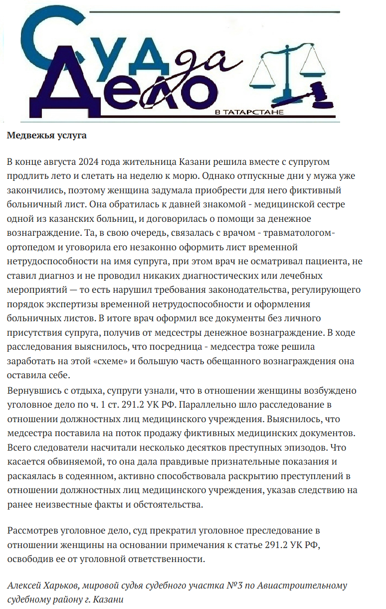 | "Медвежья услуга": опубликована статья мирового судьи А.Харькова | версия для печати |
